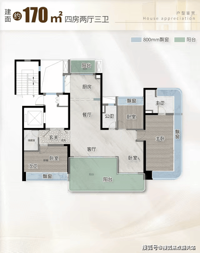 170㎡四房两厅三卫:该户型为大平层设计,空间更加宽敞舒适,全南向一字板楼设计,通透采光。客厅采用横厅设计,面宽开阔,搭配超大景观阳台,视野极佳,北望黄埔涌,西临大围公园,自然景观资源丰富。