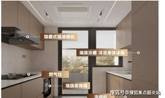 特色设计方面,该户型配备全景舱,放大了玻璃采光面,让室内空间更加明亮通透;3米层高设计,提升了空间的开阔感,避免了压抑感;厨房采用U型布局,操作空间充足,同时与餐厅紧密相连,用餐极为便捷。此外,该户型厨电品牌升级,精选「老板」和「瑞族」厨电,「老板」升降式油烟机强风量快速吸排,三眼灶具支持智能感温烹饪,更符中式家庭生活习惯;「瑞族」蒸烤箱及冰箱,体现高端人居精致享受。