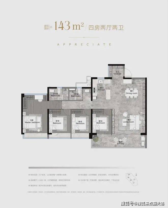 高使用率户型:建面约103-188㎡南向阔景四房,设计了超110%的高使用率。