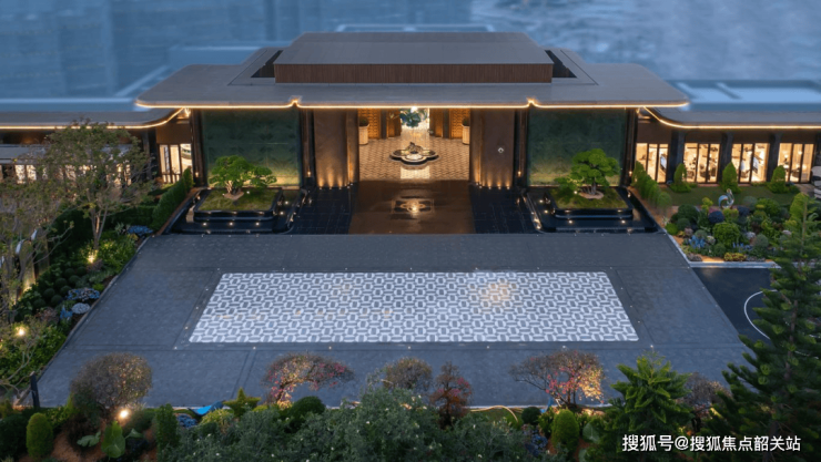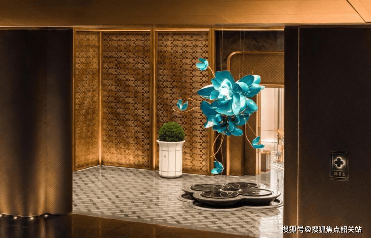 建筑是凝固的音乐,而广州馥香园的外立面则是一首关于东西方美学对话的交响乐。项目高层立面采用了现代简洁风格,通过连续性的玻璃窗墙体系与挺拔的金属线条,勾勒出精致的体块边缘,竖向线条一直延伸至屋顶,形成严谨且创新的不对称立面秩序。然而,真正让该项目在众多现代建筑中脱颖而出的,是其对“新南洋”风格的细腻演绎。塔楼基座延续了社区仪式府门的调性,入口门头均架空两层,打造出超尺度的入户大堂,拥有8米超高的空间体验。大尺度黄铜色铝板飘檐结合米白色圆角装饰柱,以及示范区同款的金属装饰格栅,共同造就了独特的归家仪式感。特别是其“安缦编织格栅”,一比一还原了安缦酒店的编织尺度与样式,采用近9800根不锈钢条,由两个工厂各三十人经过一周手工编织而成。安装时更需利用高空升降车配合多人手工塑形,最终呈现出独具东方气质、隐奢体验与静谧氛围的空间质感。这种对细节近乎偏执的追求,使得建筑不再仅仅是遮风避雨的容器,更成为了一件值得细细品味的艺术品。