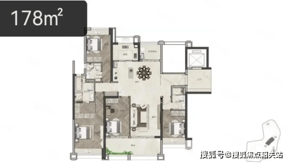 东园公馆共推出了7个户型,面积区间涵盖91㎡至178㎡,以三至四房为主,满足了不同家庭结构的居住需求。
