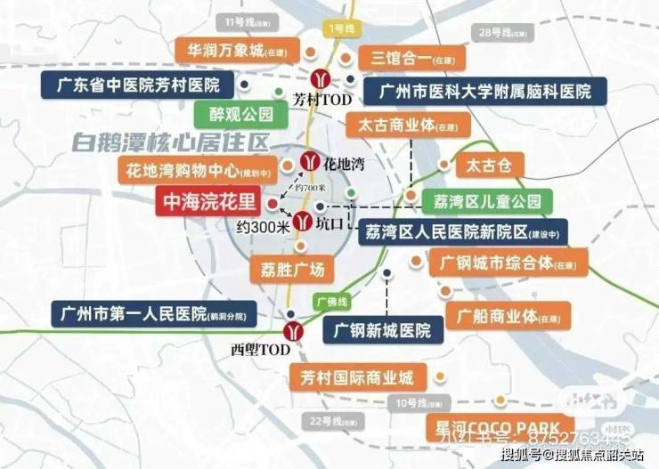 中海浣花里选址广州市荔湾区花地湾板块,位于珠江西岸CAZ战略腹地,正对白鹅潭国际商务区核心延伸带,区域价值不断攀升。交通资源尤为密集,项目步行可达地铁1号线坑口站,多条地铁线路在此交汇,包括5号线、广佛线及规划中11号线、22号线与28号线,实现广佛一体化通勤便捷通达。项目所在路网体系以三横两纵构成主干,加之多桥梁隧道接驳珠江南北,为日常通行与跨区通勤提供快速响应支持。在市政层面持续投入下,未来该区域交通畅达性与城市影响力将进一步提升,具备显著的战略地段价值。