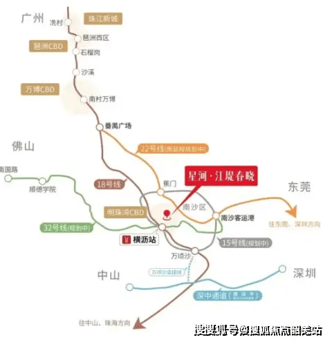 交通:项目距地铁4号线蕉门站直线距离约800米,车程3分钟;距南沙大桥入口约2公里,15分钟直达广州市区,30分钟通达深圳、东莞。
