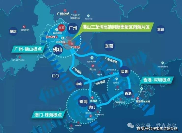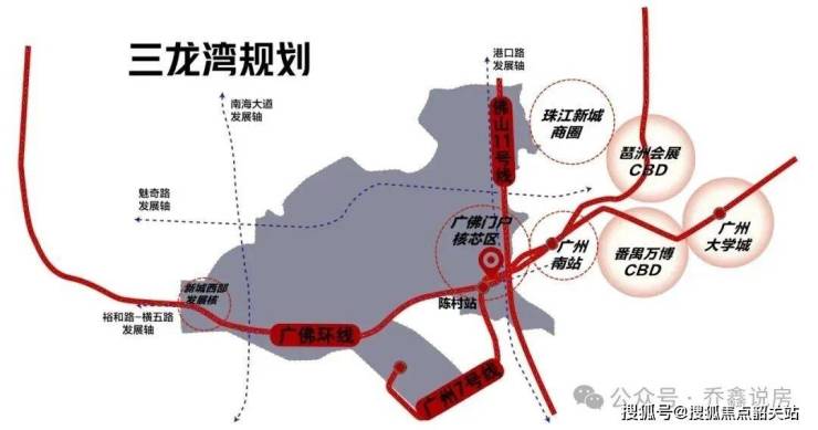 从定位上看,三龙湾是佛山推进大湾区建设的省级重大平台和广佛融合发展引领区。在粤港澳大湾区建设的大背景下,这里成为佛山对接广州、融入大湾区的重要门户。通过广佛环线、佛山地铁2号线、广州地铁7号线等交通线路,三龙湾与广州南站紧密相连,可快速直达广州、佛山的多个人流密集区,为广佛同城化提供了有力支撑。