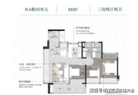 88㎡三房:总价378万起,是刚需首置的理想之选。U型厨房动线流畅,洗切炒一气呵成;主卧空间充裕,可轻松容纳衣柜与梳妆台,小家庭生活毫无局促感。