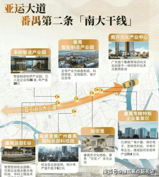 去年12月,广州地铁地产以底价118396万元拿下了广州新城停车场一期地块(亚运大道BD0210116地块),楼面价约为1万/平方米。这块地在春节之前就已规划批后公示,并正式命名为广州地铁地产·珑曜上城。值得一提的是,从番禺广场商圈到莲花湾汽车产业带,“第二条南大干线”千亿产业轴正在酝酿中,而亚运大道沿线则密布着多个产业园区,这里是番禺未来的“智核”。