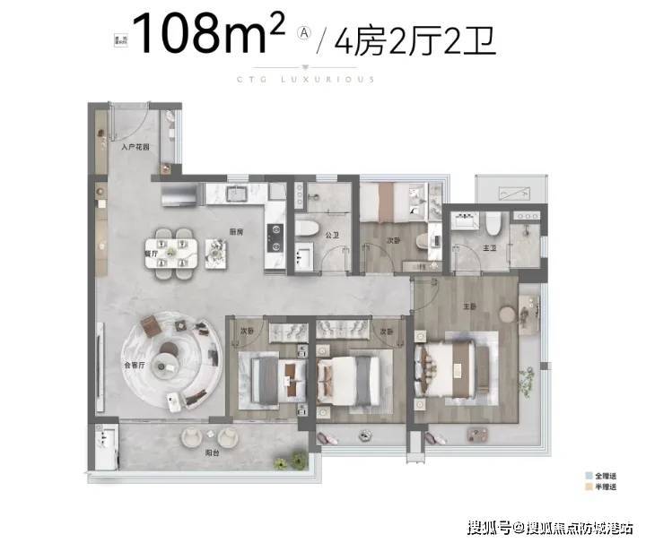 108㎡四房:总价216万,主卧带独立衣帽间,南北双阳台;