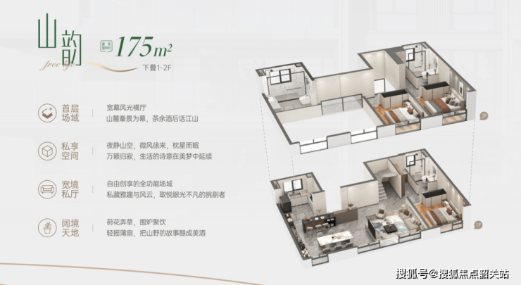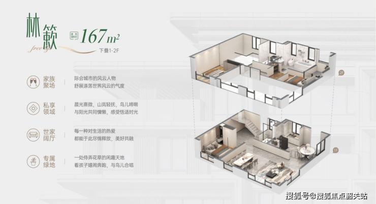 在叠墅产品方面,143-175平方米的上下叠与平层组合,更是项目的亮点。下叠户型赠送地下室与专属绿地,使用率高达300%,167平方米的边户总价预计在1100-1300万,一线望山看水,私享天地;175平方米的中间户总价约900万,性价比更高,且多一个卫生间。上叠173平方米户型,使用率约200%,客厅层高达到6.6米,宛如大面宽的复式产品,通透大气。顶楼149平方米平层,赠送约30平方米的露台大花园,可作为BBQ区或茶室,享受空中生活的乐趣。