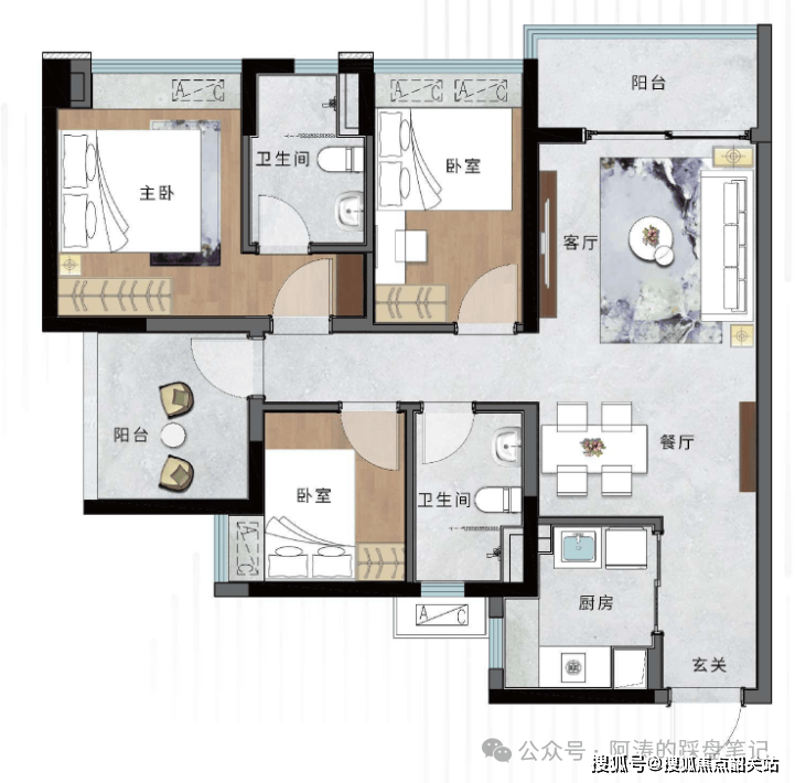 建面约88㎡3+1室2厅2卫户型,是横沥岛板块内极为稀缺的小面积四房产品,以极致的空间设计,实现了四房带主套的全能格局,彻底打破了“小户型只能做三房”的固有局限,为刚需客群提供了低门槛入主国际金融岛的绝佳机会。该户型采用南入户设计,格局方正,动静分区清晰,客餐厅一体化设计最大化拓展了公共活动空间,3+1的灵动户型设计,可根据家庭需求打造书房、儿童房、影音室、储物间等多元功能空间,完美适配家庭全周期的居住需求,主卧采用套房设计,配备独立卫生间与全景飘窗,保障了主人居住的私密性与舒适度,是刚需首套、年轻家庭的首选户型。