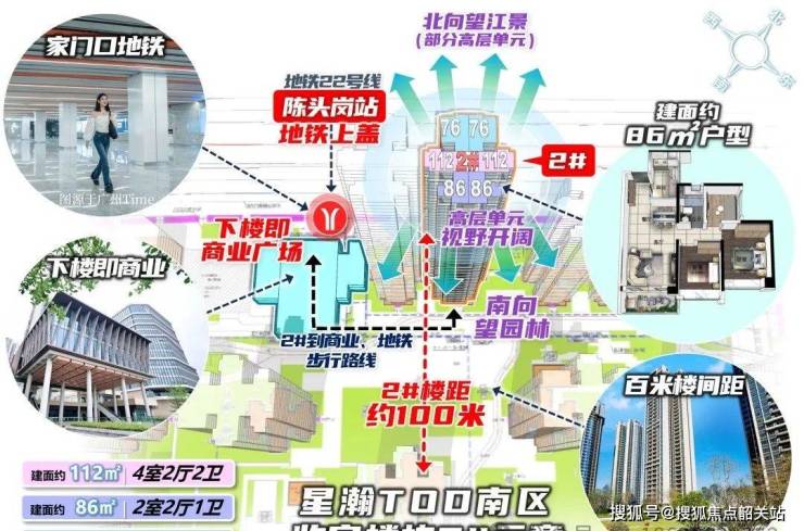 作为TOD项目,星瀚TOD的最大优势在于其卓越的交通条件。除了紧邻22号线陈头岗站外,项目距离2号线会江站也仅有约1.2公里,可通过公交或共享单车进行接驳。此外,项目周围还有多条公交线路经过,形成了完善的公共交通网络,方便居民出行。