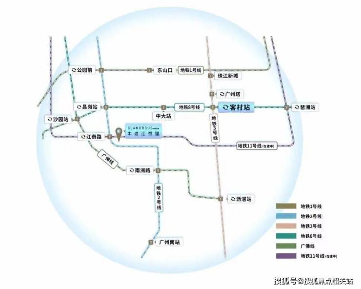 中海江泰里,海珠区文商旅融合圈地理中芯、广州未来文化经济中芯CCD,周边3公里分布2号线、8号线、广佛线以及在建的11号线,经地铁3站到中大,7站到珠江新城、琶洲,8站东山口。