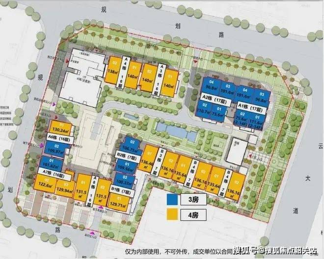 项目整体由8栋15-17层和5栋6-7层的新古典主义风格建筑围合组成,提供多种户型选择,包括两梯两户、两梯三户、两梯四户及一梯两户等多种梯户比组合。户型面积从75㎡至110㎡不等,适合不同家庭结构的需求。