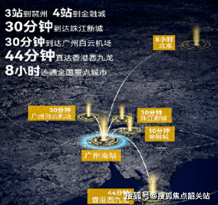 峻銮的区位优势,堪称华南罕见。项目距广州南站仅约400米,步行5分钟即可抵达,真正实现“家门口即枢纽”。更关键的是,广州南站已形成12条轨道交通交汇的超级网络——包括4条国家高铁(京广、广深港、贵广、南广)、4条城际铁路(广佛环线、穗莞深、佛莞、广清)以及4条地铁线路(2号线、7号线、22号线、佛山2号线)。这意味着,从峻銮出发: