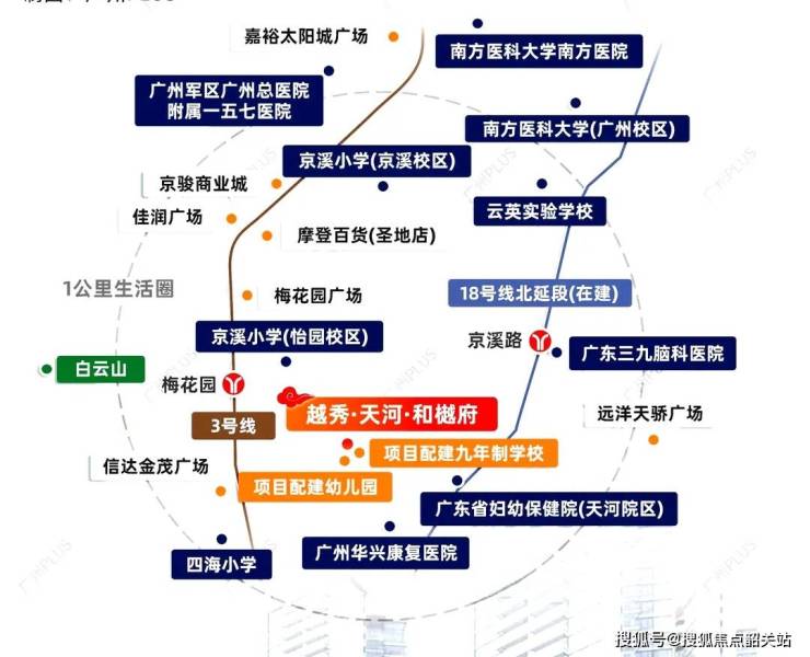 卖点三:双地铁+全能配套,品质生活一步到位:项目紧邻地铁3号线梅花园站,步行约13分钟即可到达,乘坐地铁4站直达珠江新城,无需换乘;周边还有在建的18号线北延段京溪路站,预计2026年底通车,未来出行将更加便捷。同时,周边商业、医疗、生态配套齐全,成熟兑现,品质生活一步到位。