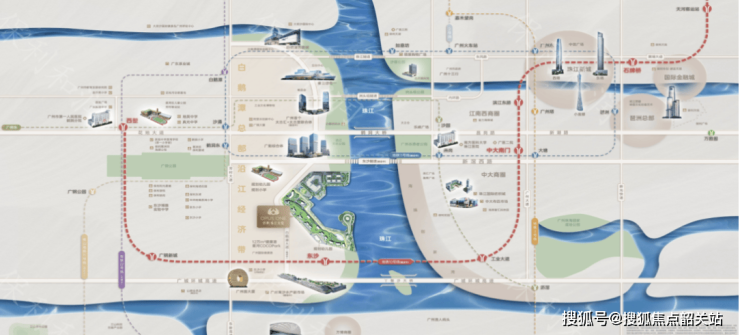项目位于荔湾区白鹅潭核心滨江片区,紧邻珠江天悦和幸福湾,地理优势显著。北侧为广船片区,东塱村环绕,南侧临平洲水道,西接广钢新城,区域整体规划以居住、商住及交通站场用地兼容发展。白鹅潭作为广州重点滨江生活区,生态景观资源丰富,江景视野开阔,为居民提供优越的滨水居住体验。项目周边已有珠江天悦、幸福湾等成熟楼盘,为区域生活配套奠定基础,同时项目体量小,居住密度低,保证居民私密性和生活舒适度。区域发展潜力大,滨江经济带的城市价值不断提升,使项目在地段稀缺性和未来增值潜力上占据优势。