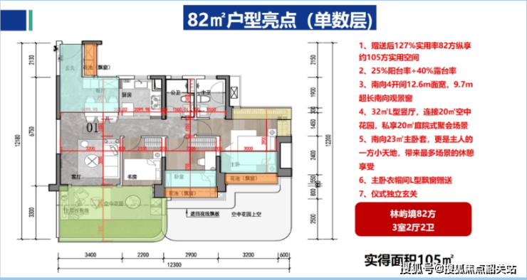 产品颠覆:广州首个“超新规”第四代住宅,82㎡户型得房率140%,实得面积超110㎡,空中花园错层设计,兼顾采光与私密性。