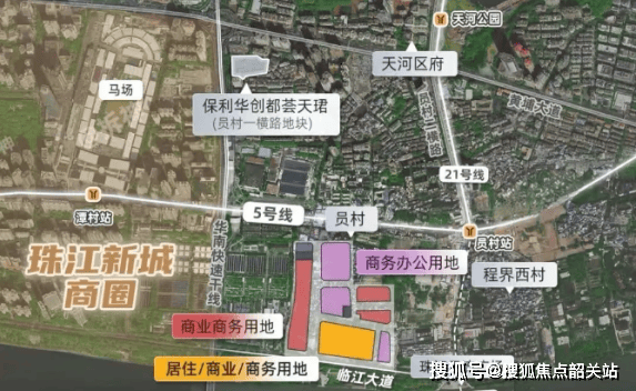 保利南方面粉厂地块坐落于天河区金融西区临江大道旁,占据着极为优越的地理位置。其紧邻珠金琶黄金三角,周边交通网络纵横交错。东北侧距广州地铁5号线与11号线交汇的员村站仅约300米 ,步行几分钟即可轻松抵达。5号线东西贯穿广州,能快速抵达珠江新城、广州火车站等重要区域;11号线作为广州环线,串联多个中心城区,为出行带来极大便捷。项目与南面珠江仅隔临江大道和北岸文化码头,南向望江视野基本无遮挡,是打造顶级豪宅的优质基础。