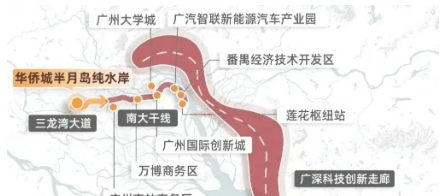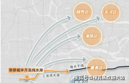 项目位于佛山市三龙湾半月岛板块,被定位为“黄金2公里”的宝地,是三龙湾最宜居、最时尚的国际生活中央区。尽管周边地铁线路尚在规划中,但自驾出行十分便捷,可通过魁奇路+佛山一环快速抵达广州荔湾、海珠等地,以及广州南站等重要交通枢纽。