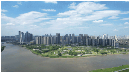 半月岛湿地公园环绕,占地面积约400亩,提供了一个舒适宁静的居住环境。项目充分利用其地理优势,将江岛美景引入室内,通过无界玻璃幕墙和大面积阳台设计,让居民尽享自然之美。