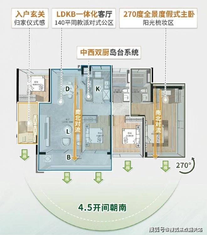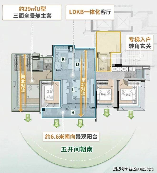 这户型的过人之处,我愿称之为“通透尺度天花板”,主要体现在两点:一是超强对流能力,二是豪宅级空间尺度。