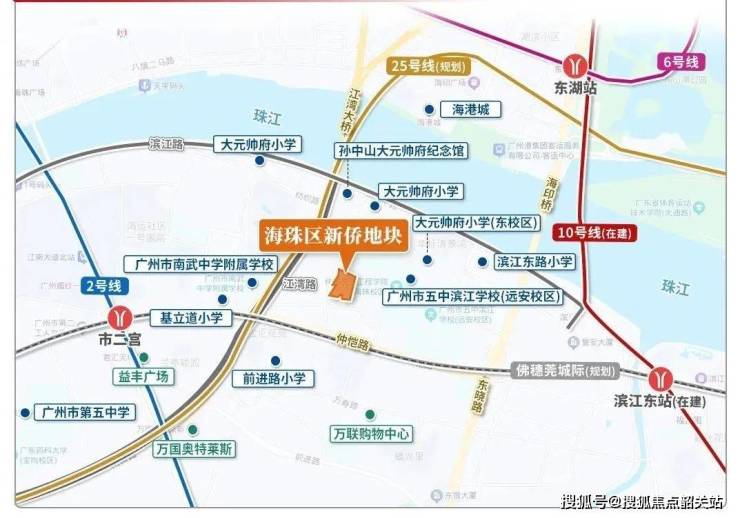 越秀珠实皓悦滨江紧邻地铁8号线鹭江站(步行800米)、10号线滨江东路站(预计2026年通车,步行500米),同时门口设有“滨江东路站”,覆盖多条公交线路。自驾方面,3分钟可上广州大道,5分钟接驳内环路,15分钟直达珠江新城。此外,项目距离琶洲数字经济试验区、珠江新城CBD及广州塔文旅区均在3公里范围内,地理位置优越。