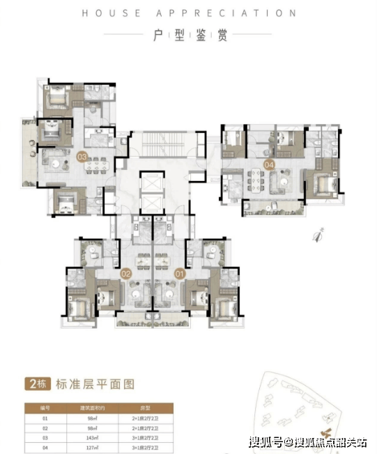 在售户型涵盖建面98㎡三房两卫、116㎡四房两卫、127㎡四房两卫、128㎡四房两卫、143㎡四房两卫,能适配刚需首套、二胎家庭及改善型居住需求。