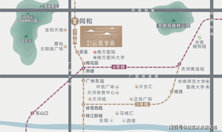 雄踞白云山与广州大道城市双中轴之上,地段价值不可复制。项目位于3号线同和地铁站旁,4站到天河中心,咫尺珠江新城