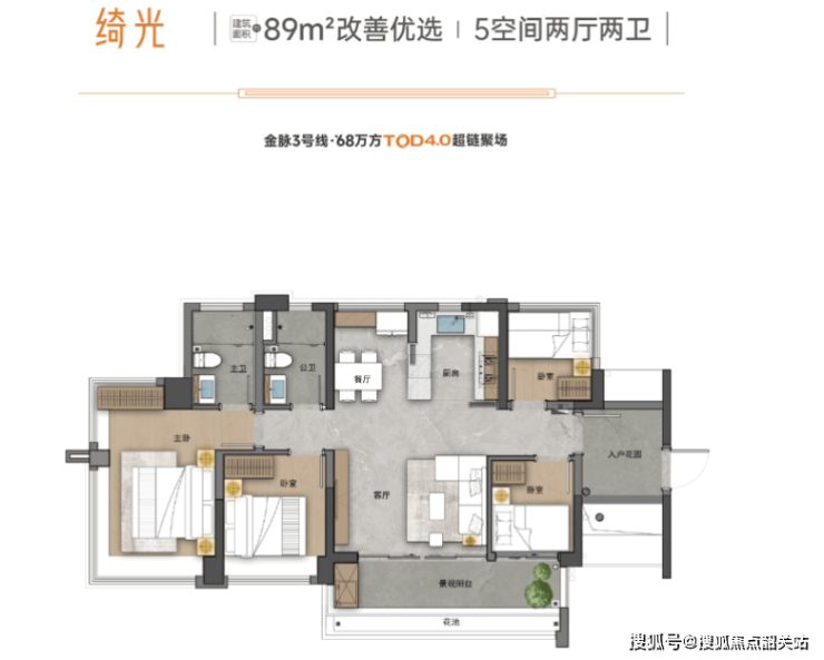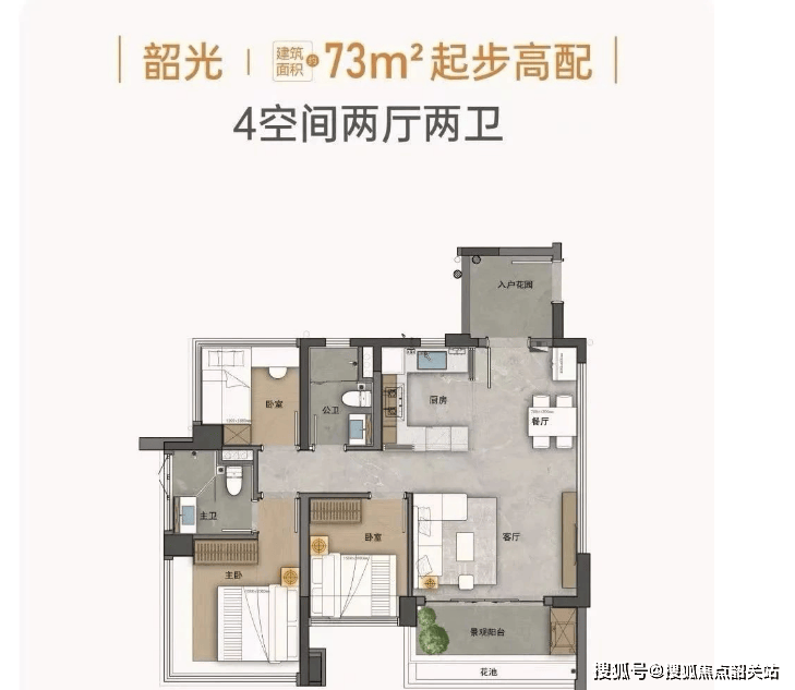 户型设计灵活多样,从小面积的三房到大面积的四房都有涵盖,每个户型都注重空间利用率和居住舒适度,部分户型还配备了入户花园和宽景阳台。