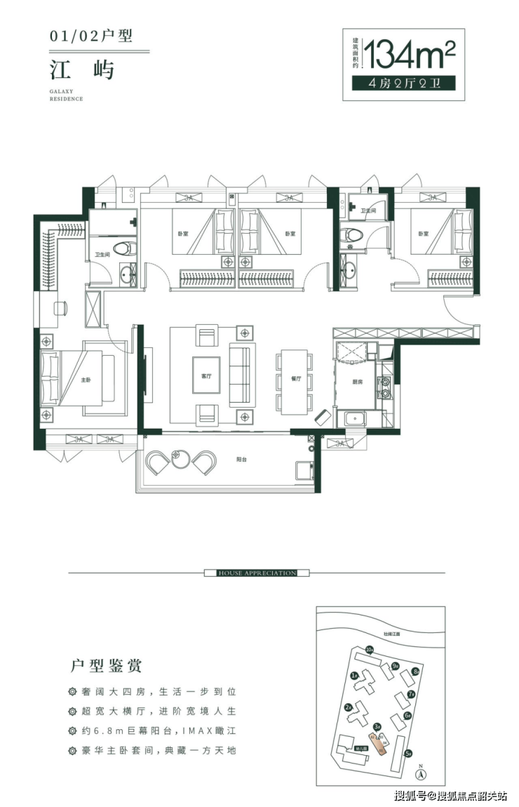 稀缺的瞰江户型:项目提供了99-134平方米之间的三至四房户型,满足不同家庭的需求。所有住宅均为2梯4户设计,基本5楼以上可以无遮挡望江。