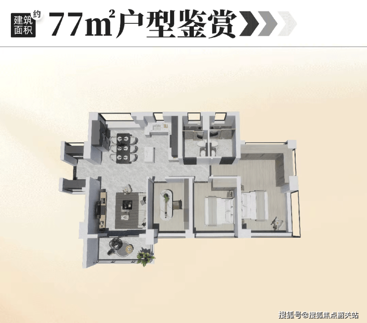 76㎡三房:四开间朝南,客厅进深约7米,开间达3.2米(不含墙体),空间通透感媲美90㎡以上户型;灵动多功能房可随家庭生命周期灵活调整,满足从二人世界到三代同堂的不同阶段需求。
