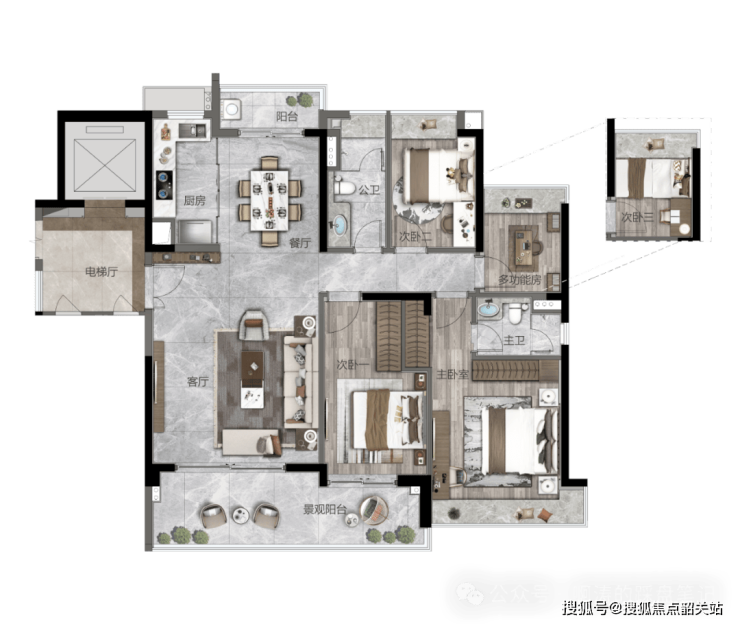 建筑外立面采用现代新亚洲风格,以浅灰石材与金属线条为主,整体简洁但有层次感。设计团队包括梁志天、汉森伯盛等,不过实际呈现更偏向实用主义——没有过度堆砌装饰,而是把成本花在了空间尺度和细节上,比如全屋华为智能家居系统、一线品牌建材交付标准等。这种“低调但有料”的做法,在当前市场里反而显得踏实。
