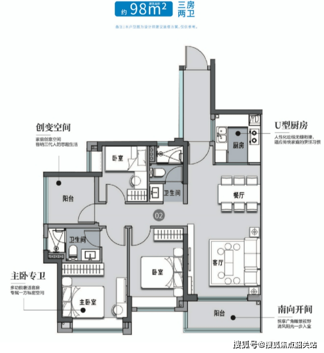 98㎡两厅3房:竖厅方正布局,空间利用高效,经典改善首选;