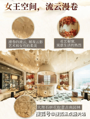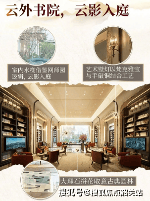 社区配套空间同样实景开放,云外书院人文空间依托古典园林造园逻辑打造,光影错落、景致雅致,大理石拼花地面、艺术定制壁灯等细节加持,打造静谧的阅读与休闲空间;二楼规划艺术长廊、室内瑜伽室、专属女王社交空间等多元功能场域,软装布置精致,空间功能划分清晰,兼顾休闲健身、兴趣培养、闺蜜小聚、亲子互动等多元需求,丰富业主日常业余生活。