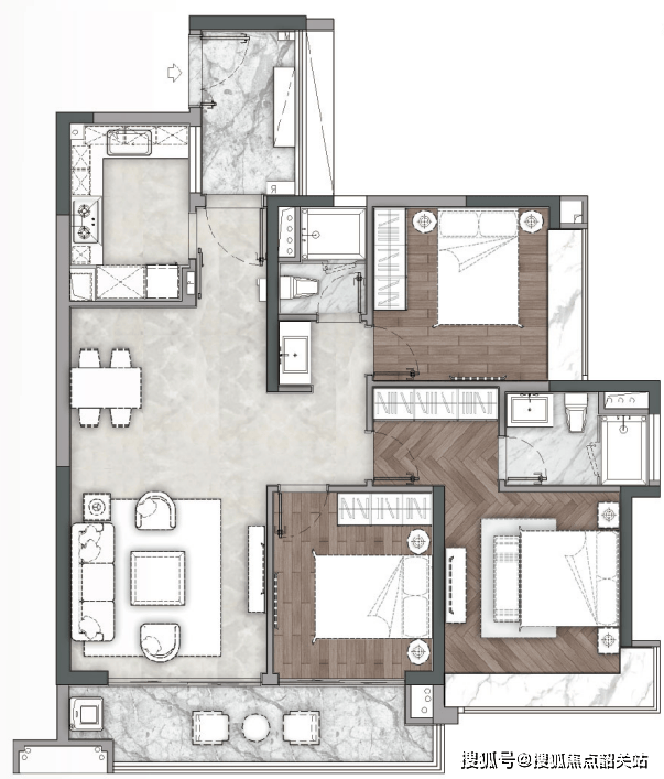 主力在售的是A1、A2栋(现房)和A5栋(期房),户型从120㎡三房到190㎡四房不等。我重点看了180㎡的四房样板间:东南15°错落布局确保每户都能直望白云山主峰摩星岭;LDK一体化设计让公共区域开阔通透;主卧带独立衣帽间和双台盆卫浴,细节处理得挺周到。装修标准也用了不少国际品牌,智能化系统覆盖安防、照明和家电控制。