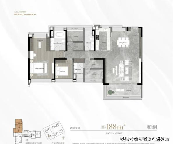 主力户型包括105-188㎡南向瞰江四至五房,所有设计均强调通透性和景观面: