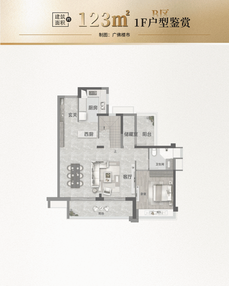 在满足基本需求的基础上,保利华侨城云禧更推出了建面约123-163㎡的顶层复式新品。这种设计通过创新的双层布局,在同等建筑面积下,获得了近乎倍增的实际使用空间。例如,123㎡户型的一层为家庭社交主场,配有约6.4米宽的横厅和双厨设计,适合家庭聚会和日常互动;二层则为主卧套房,配备了独立卫浴、衣帽间及空中露台,为男女主人营造出一个高度专属、不受打扰的尊崇领域。