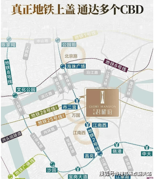君曜府位于市二宫板块核心区域,地处海珠主干道江南大道附近,紧邻内环路、滨江路等城市交通要道,交通网络四通八达。项目为 2/28 号线(广佛段在建中)交汇点市二宫站上盖,距离地铁口不到 200 米,出行便捷度高。