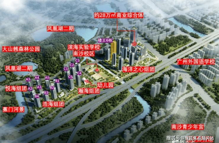 海语熙岸择址南沙区府旁的凤凰湖畔,背靠946万平方米的大山乸森林公园(在建中),坐拥山、湖双重自然景观。该项目处于凤凰大道和黄阁南路两条主干道交汇处,形成了一个黄金十字路口,不仅提升了区域的可达性,也为未来的发展奠定了坚实的基础。