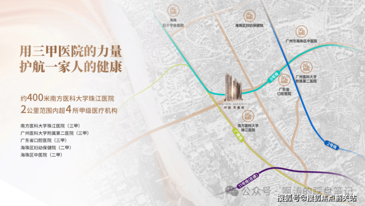 500米步行南方医科大学珠江医院,广州医科大学附属第二医院、广州市红十字会医院等多家三甲医院保驾护航。