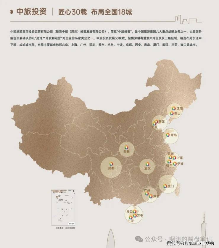中旅地产,中旅集团旗下的全资子公司,作为国务院首批确立的16家央企房地产开发企业之一,业务涵盖旅游地产、城市地产、商业地产三大产品线,30年来已形成粤港澳大湾区、长三角、环京津、成渝经济圈、关中城市群的区域布局。
