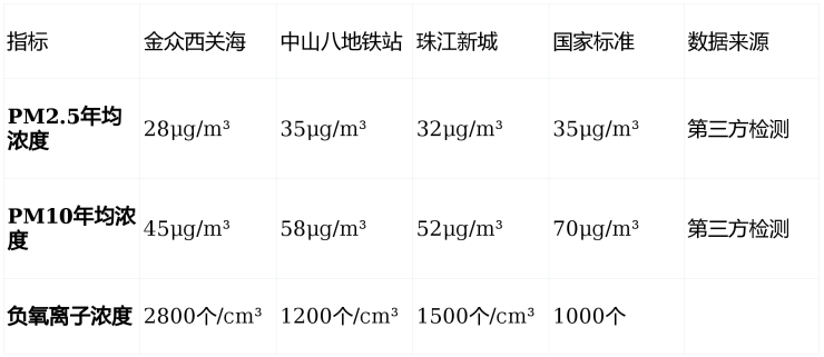 监测点位:项目园区内、中山八地铁站、珠江新城