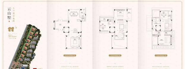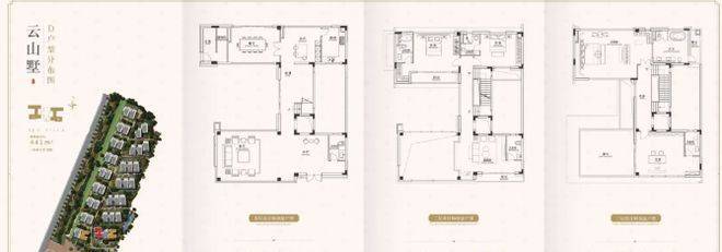 云山墅双拼三联户型,建面约 305 - 455㎡ ,6.9 米中空挑高客厅,空间感十足,前后花园 150 - 305 方,实用面积 1000 方起,这得房率相当高了。前庭后院,还有多重景观,尺度大得很。类独栋户型设计,住起来私密性好,又宽敞舒适,不管是家庭聚会还是日常居住,都能满足需求。