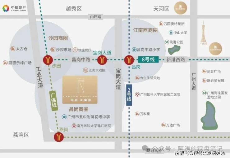 海珠西板块作为广州老城区的重要组成部分,其城市地位在近年城市规划中持续提升。根据广州市规划和自然资源局公示的《海珠区国土空间总体规划(2021-2035年)》,海珠西被定位为“都会区综合服务节点”,重点承担居住、商业、公共服务等功能。中旅天宸府位于海珠区昌岗中路与宝岗大道交汇处,地处海珠西几何中心位置,属于政府规划的“三大黄金走廊”(宝岗大道、工业大道、江南大道)辐射核心区。
