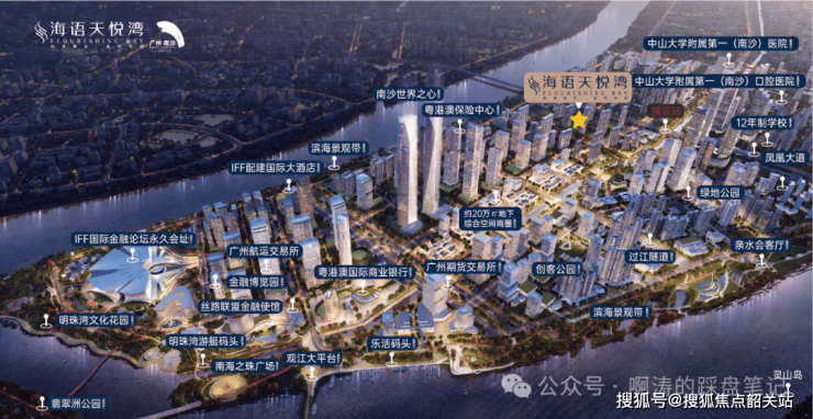 项目东侧为IFF国际金融论坛、广交所、南沙世界之心、金融创新中心等地标性建筑为代表的金融地标集群,与项目“147米”高度住宅地标,遥相呼应。