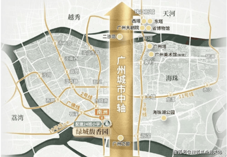 绿城·馥香园是绿城中国在海珠区打造的重点住宅项目,位于海珠湾核心板块,地理位置优越,紧邻珠江后航道,遥望广州塔与海心沙等城市地标,具备深厚的城市中轴属性。项目总建筑面积约7.1万平方米,规划5栋高层蝶式板楼住宅,总户数约672套,主力户型为100-130平方米的三至四房产品,定位为中高端改善型住宅。项目延续绿城一贯的高品质产品理念,融合岭南园林美学与现代人居需求,致力于打造海珠主城宜居新标杆。区位交通|地铁/道路/通勤价值