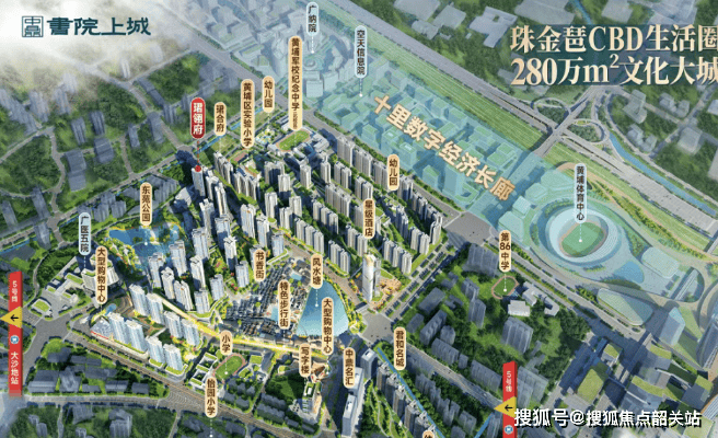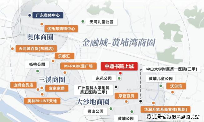 中鼎书院上城位于广州市黄埔区,是一个总建筑规模达到280万㎡的超大体量城市综合体项目。作为老黄埔板块的重要组成部分,该项目不仅拥有丰富的教育资源,还在交通、商业、医疗等多个方面提供了全面的生活配套服务,适配于各类置业人群的需求。