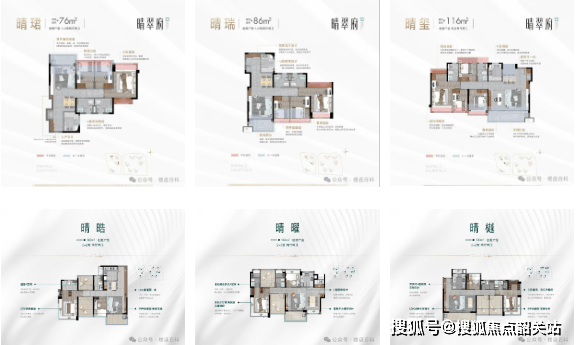 卓越晴翠府主打76-130㎡的三四房户型,面积段覆盖广泛,精准匹配刚需上车、小家庭改善及多孩家庭的多元需求。所有户型均以方正通透、高使用率为核心设计原则,采光通风俱佳。东侧地块采用独特的V型楼栋布局,有效避免传统板楼常见的对视问题,部分北向单位更可远眺湖景,南向则俯瞰中央园林,视野层次丰富。