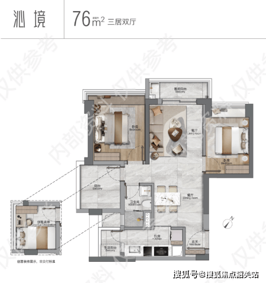 四、产品力出众:76㎡做三房,280万起上车主城区