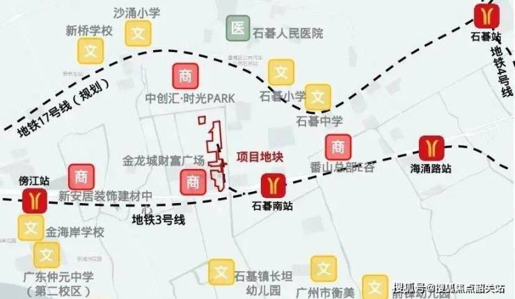 珑曜上城并非传统意义上的地铁盘,而是真正践行TOD 4.0理念的复合型社区。项目距地铁3号线石碁南站仅约500米,步行7分钟可达。通过3号线: