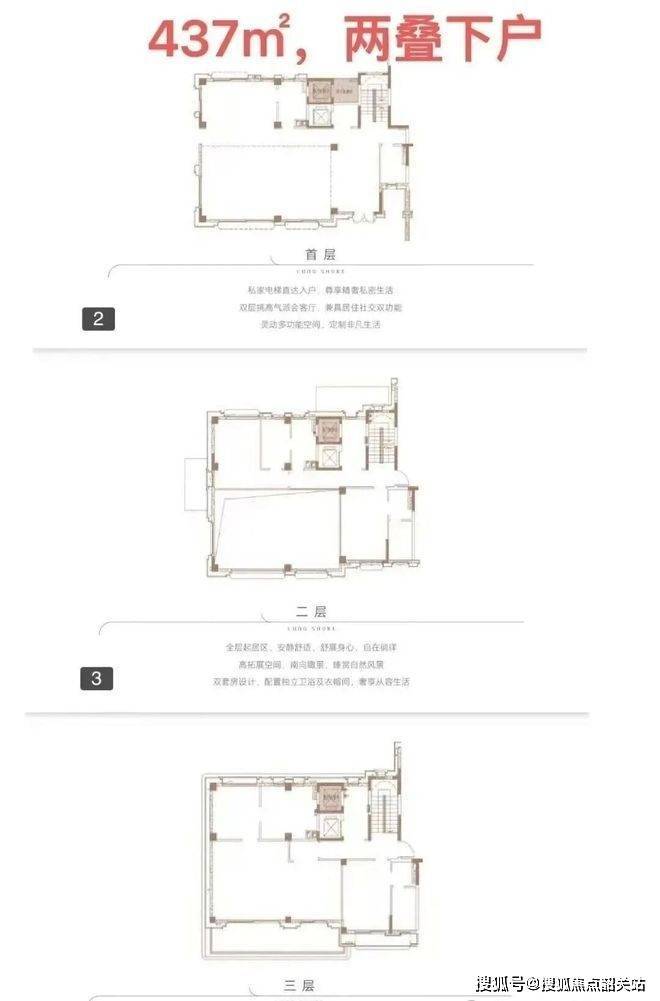 下叠面积为305㎡,首首层花园面积区间约为233-517㎡,实用率238-355%;三叠户型最高可做到6房。